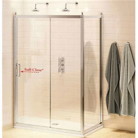 This beautifully crafted sliding shower door with side panel is manufactured and designed expertly by Burlington. This option has a special soft close function and is available in various sizes. All of the Burlington Shower doors and enclosures are 195cm high and can be adjusted by up to 2cm from the wall. The enclosures are constructed from serrated aluminium and 8mm toughened glass. All of the enclosures can be installed with a ball header or a flat plain finish to the top of the frame posts. Victorian Plumbing offers this fantastic Burlington Shower enclosure at a Great price.