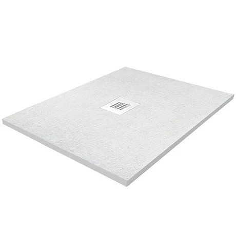 A textured white slate effect square shower tray with a sleek ultra-low profile, these beautifully crafted slate effect shower trays are perfect for adding a natural feel to your bathroom. This robust square shower tray has been manufactured from a gel coat stone resin with slate finish and can be installed flat or recessed into the floor.