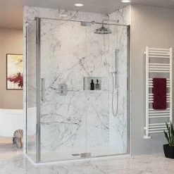 This Merlyn Black Side Panel is designed to be used in conjunction with the Merlyn Black Sliding Door. Made from 8mm glass with a minimal matt black profile. With Mershield Stayclear, the protective coating ensures the glass maintains its sparkle for years to come.