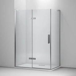 The stylish frameless and minimalist Ascend Hinge Shower Door Corner is guaranteed to create the designer look in any bathroom. With 8mm thermally toughened safety glass, chrome-plated brass hinges and secure magnetic seals on the enclosure door for a water tight finish. CleanCoat technology keeps the glass looking like new and is easy to clean. Available in various sizes, the door is combined with a side panel to create a corner enclosure.