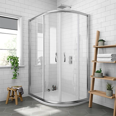 Create a spacious shower area in your bathroom with the Newark RH Offset Quadrant Enclosure + Pearlstone Tray. This right-handed corner shower unit is easy to fit. It’s framed by gracefully curving glass, giving your bathroom space a soft contour. Sliding doors offer easy access, while a high quality resin tray infused with volcanic ash ensures a scratch and impact resistant finish. Choose from four different sizes.