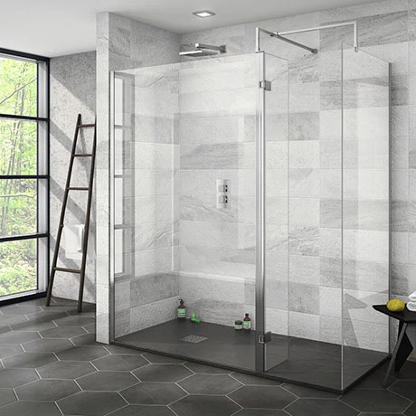 The luxury Nova frameless wet room enclosure features a 8mm thick clear glass panels with a return, ideal for creating a minimalist stylish showering area in your bathroom. Supplied with a textured graphite slate effect rectangular shower tray with a sleek ultra-low profile which provides ample space to wipe down after a shower.Â