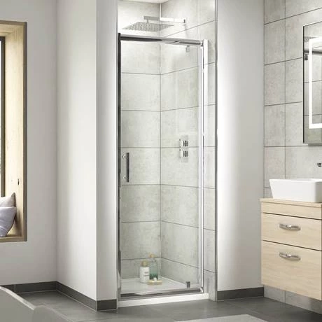 The Nuie Pacific pivot shower door with 6mm toughened safety glass and polished chrome frame, has a outward opening door for easy access. Our range of quality shower doors are manufactured to the highest standards, with a height of 1850mm. Comes with Lifetime guarantee.